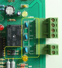 如果設置完畢后,出現以下異常:門開了一半就馬上關閉了,或者 關了一半又打開了。 這個是因為,控制器繼電器對電鎖保護電路對自動門有副作用,請拆除或者剪斷繼電器旁邊的黑色的二極管。剪斷每個元件的一個管腳并翹起即可。(藍色的壓敏保護電路不用動)